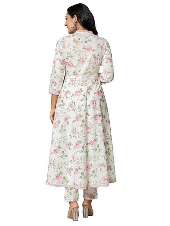 Women's Cotton Printed Anarkali Kurta with Palazzo Pants and Dupatta